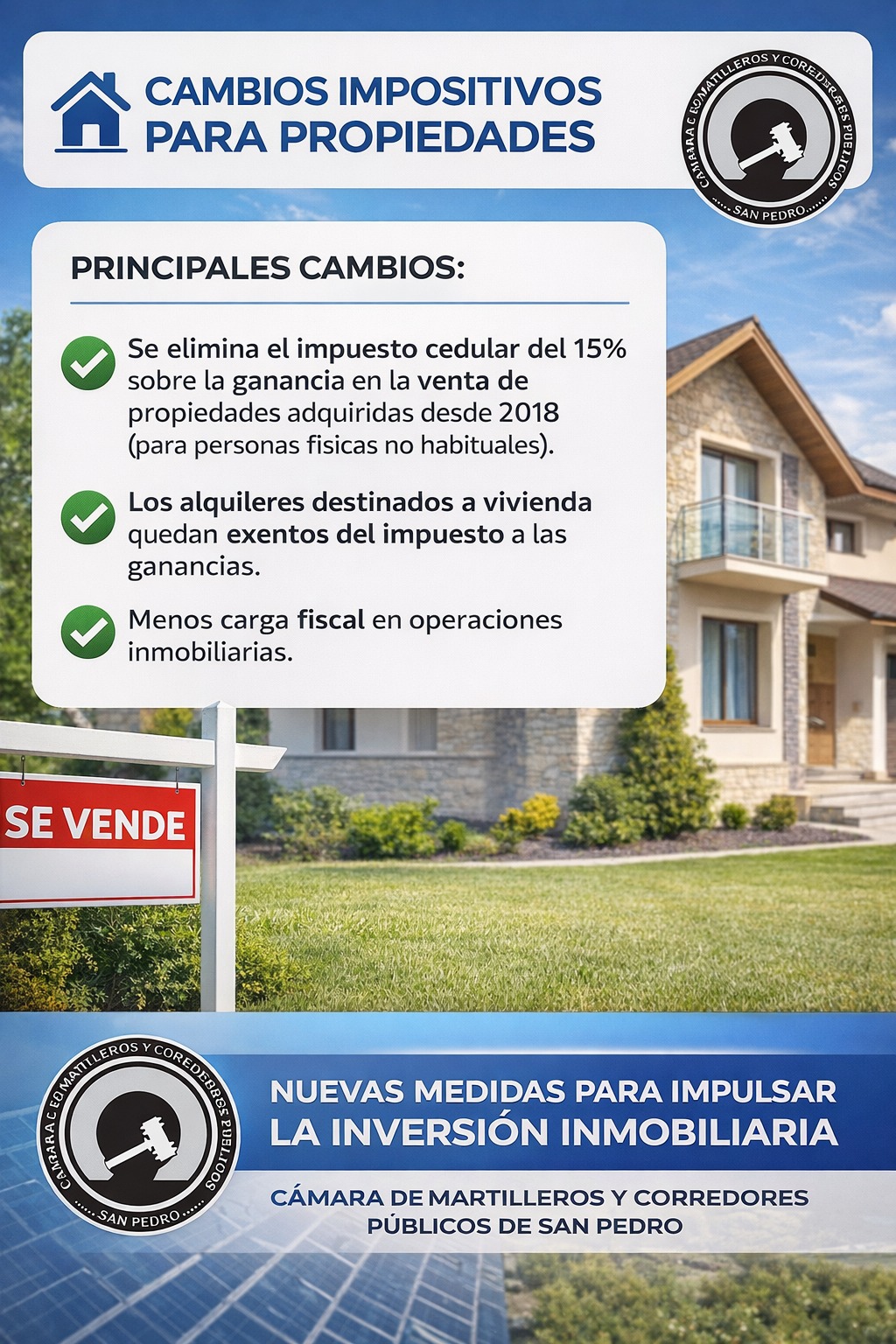 Recomendaciones para operaciones inmobiliarias seguras Desde la Cámara de Martilleros y Corredores Públicos de San Pedro, reiteramos la importancia de contar siempre con la asesoría